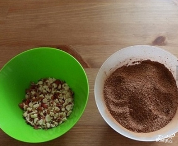 3. Отдельно измельчаем орехи. Также смешиваете сахар и какао.