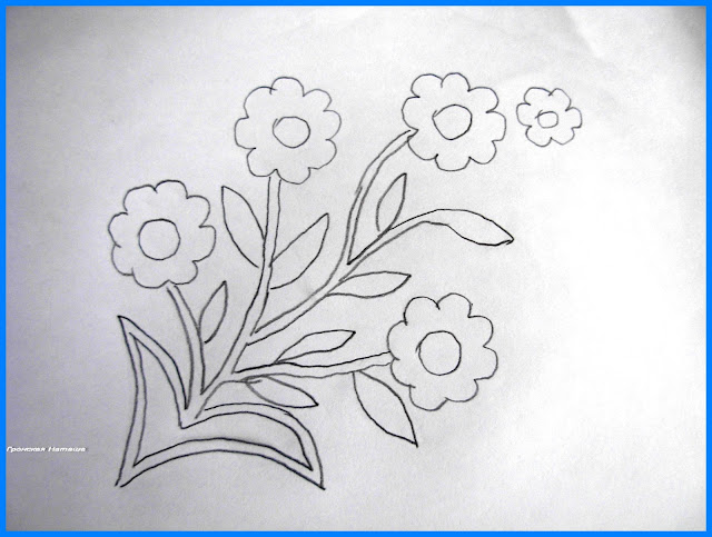 И так берем два кусочка белого хлопка ,любого и тех что есть. Эти два кусочка будут нашим верхом .Теперь нам нужен рисунок .Вот такой вот не сложный и миленький букетик хочу вам предложить на первую пробу