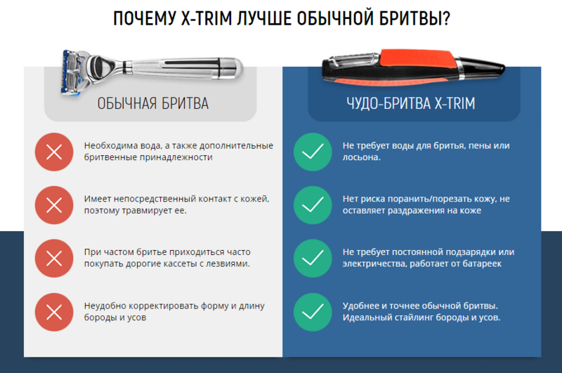 Поможет вам в сохранении своего имиджа чудо-бритва современности под названием X-TRIM. Главным ее преимуществом перед всеми остальными электрическими бритвами является то, что она не требует источник питания, а работает от обычных батареек. Кроме того, она многофункциональна, и воспользовавшись ею, человек может одновременно решать несколько проблем: