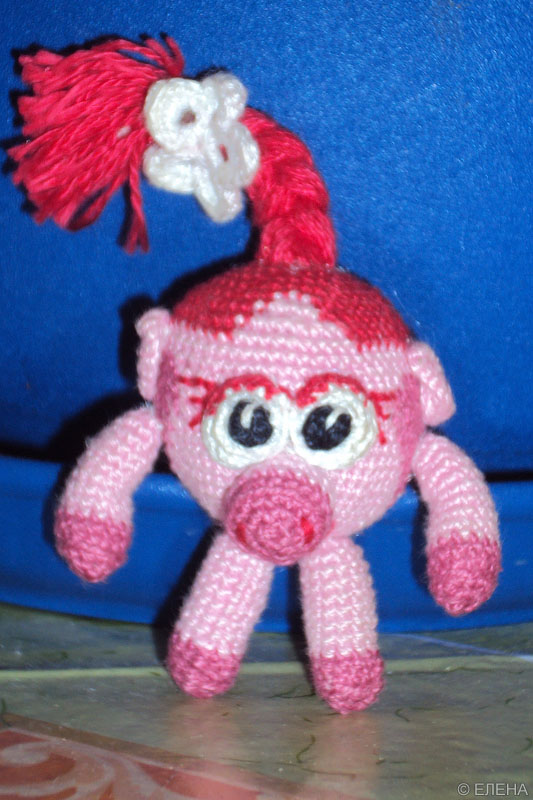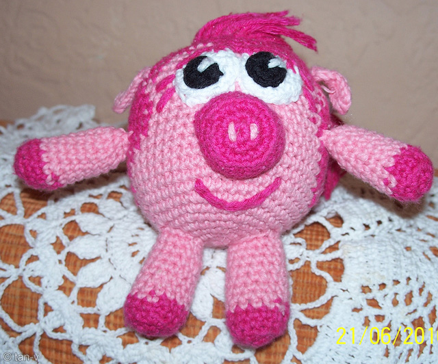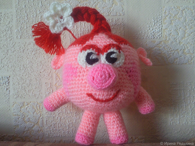 Пятачок наполнить синтепоном и вышить красной нитью ноздри.