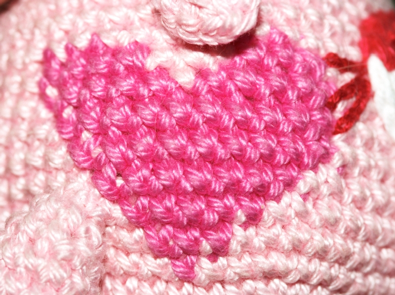 Совет: сердечки намного проще связать отдельно, а затем пришить к туловищу.