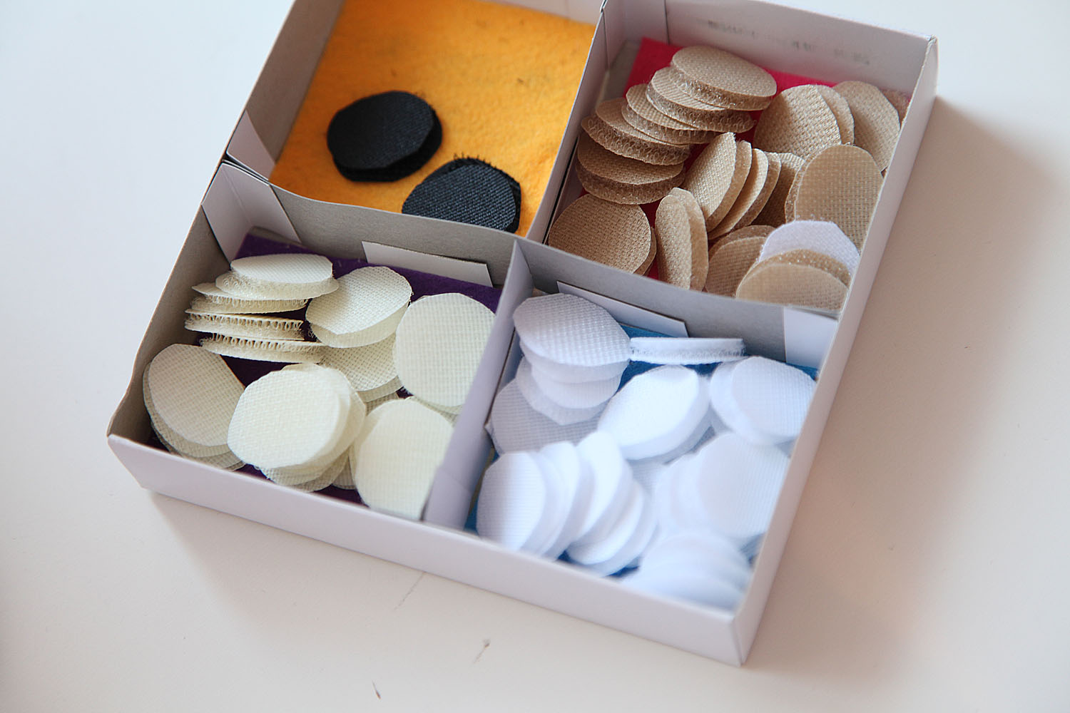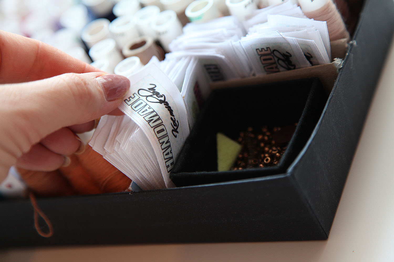 Здесь же коробочка с глазами и ресницами. А так же разноцветные этикетки.