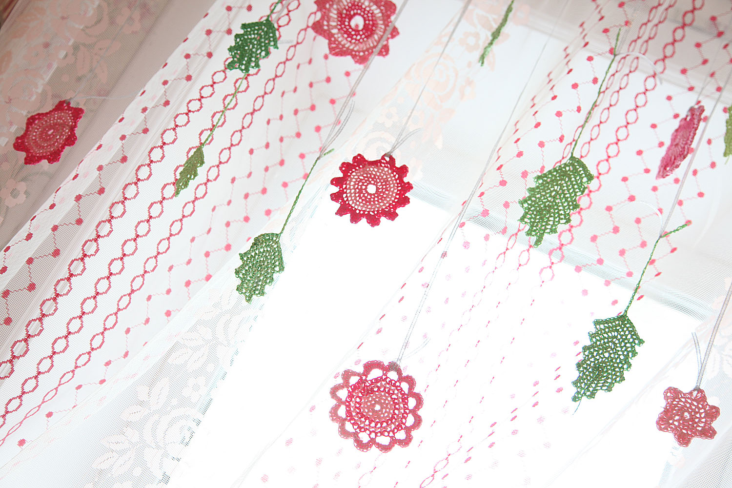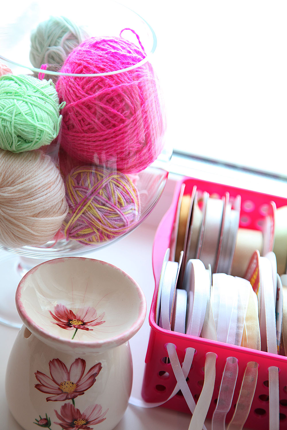 На его торце висят вязаные шарфики. Я делаю их про запас, всегда, когда у меня есть свободная минута.