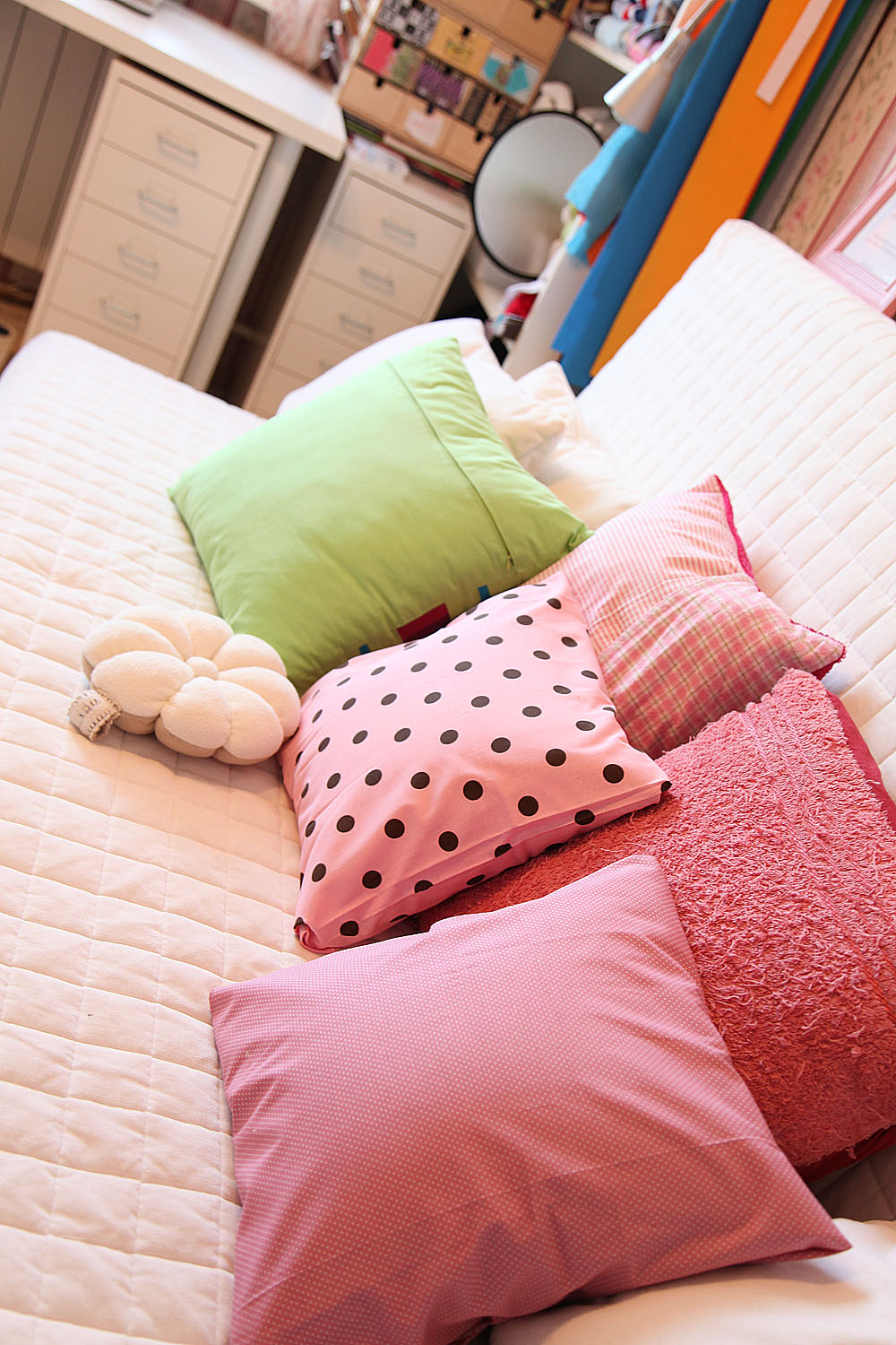 Почему розовый? Все настолько просто... Тут были эти полосатые обои с цветочками. Вот и пришлось об игрывать ситуацию.