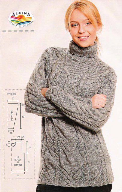 Метки: свитер с косами свитер вязание спицами пуловер |