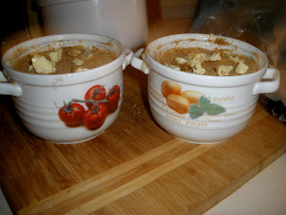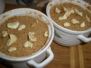 4. Подготовить одну большую стеклянную форму для выпечки или несколько порционных, я взяла 2 вот такие симпотичные кастрюльки, по типу больших кокотниц! Объем подошел идеально! Смазать их маслом и обильно присыпать панировочными сухарями.