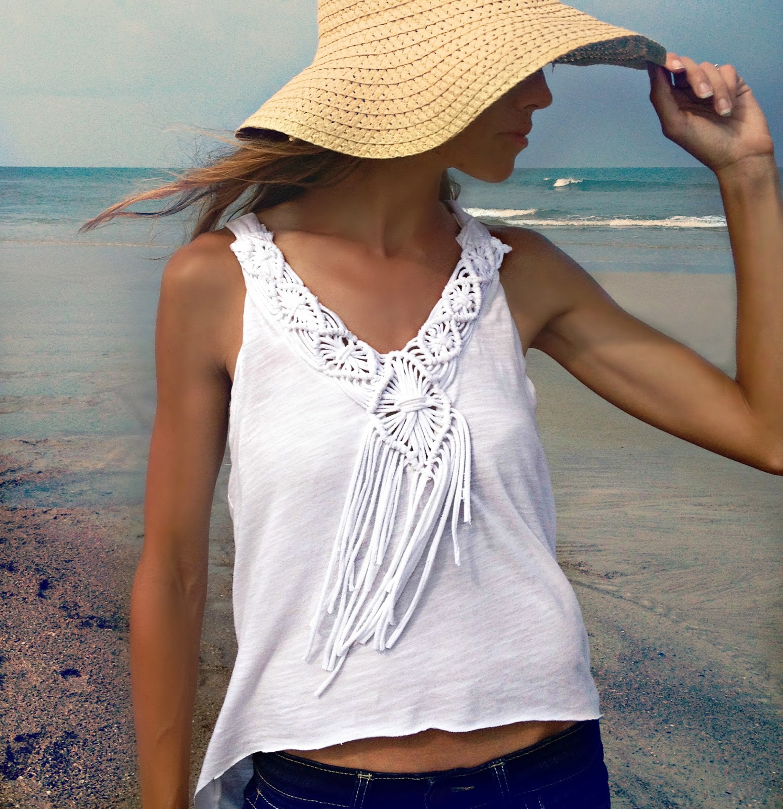 Переделка: отделка футболки в технике "макраме" + 2 видео