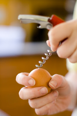 Тонким термометром ( как на фото) или деревянной шпажкой можно помочь извлечь яйца из скорлупы.