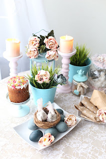 Как уже повелось, в этом году мы все делаем в последний момент... Обычно к такому светлому празднику, как Пасха готовились заранее, но только не в этот раз. Я уже было решила не красить яйца, а поспать, но давнее желание оформить все в том стиле, который мне по душе - взял вверх. Я очень люблю цветовую гармонию и нейтральные спокойные тона, отличные от всеобщих ярких пасхальных красок. Именно поэтому в этом году оформила яйца в винтажном стиле и смастерила крафт-пакетики для угощений. А еще у меня был свой собственный пасхальный кролик, даже два... Одному явно не особо нравились эти большие уши, а вот второму даже совсем неплохо с такими ушами было делать до ночи уроки... Угощения раздавали в таких вот небольших коробочках. В целом праздник удался. Пусть не все успели, но хотя бы частично оформление стола удалось...