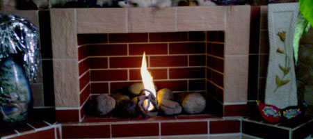 Фартук из керамогранитной плитки под натуральный камень – легко моется.
