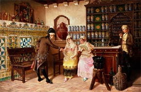 Барьером или прилавком рецептурная комната отгораживалась от приемной комнаты, куда приходили клиенты и ожидали заказанное лекарство.