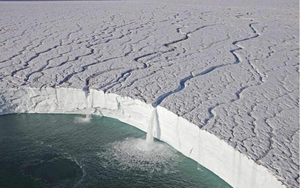 Водопады, текущие по краю ледника в Шпицбергене, Норвегия