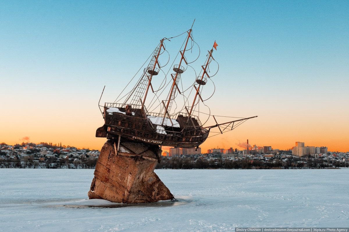 Очаровательный памятник на постаменте - фрегат Меркурий, торжественно украшающий Воронежское водохранилище и созданный в натуральную величину. В прошлом Россия могла гордиться развитием кораблестроения, а на берегах реки Воронеж развернулось создание военных кораблей Рамонской верфи, что принесло необычайную славу флоту на Азовском море.