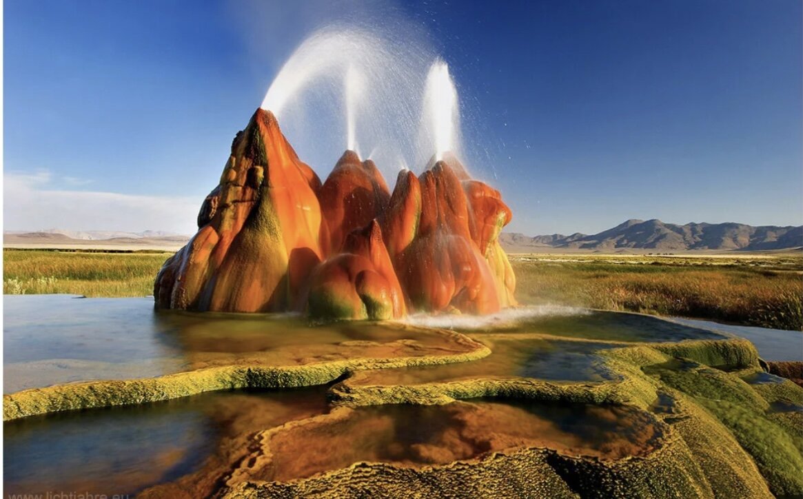 Расположен в пустыне Невада, этот искусственней гейзер представляет собой три больших красочных кургана, со струйками воды. Интересно, что он был случайно создан в 1916 году во время бурения скважины. Затем природа взяла верх, и минералы превратили его в то, что мы видим сегодня.