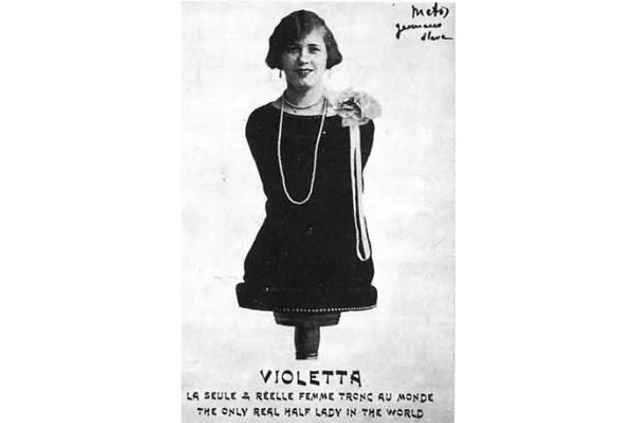 Из-за синдрома Тетра-Амелия Виолетта родилась без рук и без ног. Но, несмотря на свой физический недостаток, девочка стала очень шустрой и даже сама расчёсывала волосы, зашивала вещи и даже просовывала нитку в иголку. Физических недостатков туловища у Виолетты не было, врачи говорили, что оно совершенно. Поэтому в цирке её представляли как "Безрукую красавицу" или "Безрукую Венеру". Девушка рисовала карикатуры с помощью губ и зубов, также она каталась по мату и восстанавливала равновесие. В конце представления ассистентка обычно проносила Виолетту вокруг арены, чтобы зрители могли прикоснуться к ней и почувствовать её реальность. Некоторые особенно нахальные зеваки пытались поцеловать Виолетту, на что она отбивалась подбородком, да с такой силой, что даже могла вызвать слёзы у обидчика.