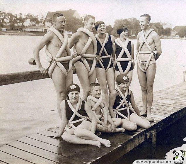 Дизайнеры из Вашингтона в 1929 году разработали вот такие деревянные плавательные костюмы. Видимо, чтобы никто уж точно не утонул.