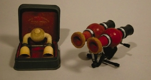 Массаж осуществлялся струей прохладного воздуха. Сам механизм состоял из подставки с двумя окулярами, на первый взгляд, очень похожую на микроскоп. Только к окулярам присоединялись не линзы, а резиновые груши. Изобретатели предлагали прижать окуляры к лицу, а затем размеренно нажимать на боковой рычажок. Он, в свою очередь, сжимал и разжимал груши, а те направляли воздух прямо в глаза владельцу прибора. Естественно никакой пользы от такого "массажа" не было.