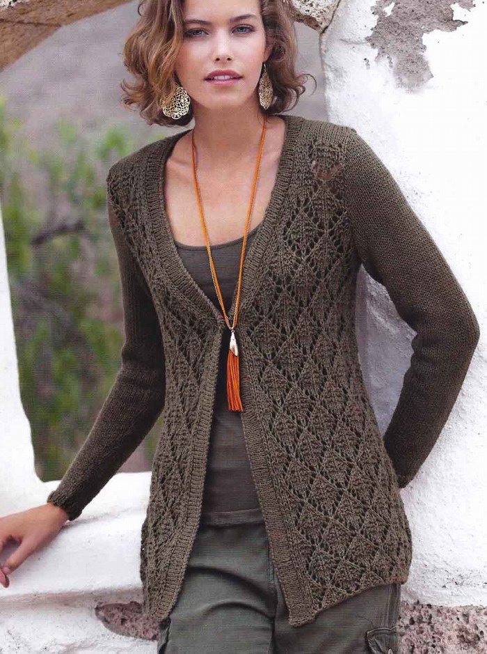 Жакет кружевным вязанием спицами-эффектно, нежно, женственно |