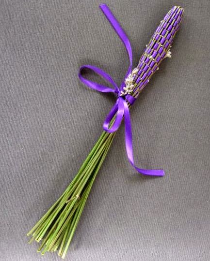 За что люблю французов, так это за их умение украшать свой быт небольшими стильными вещицами. Ну, вот казалось бы лавандовый ароматизатор, он же антимоль. Что здесь изобретать. Повесил в шкаф пластинку с лавандовым запахом или, если чуть поднапрягся - саше с сухой лавандой, и дело сделано! А французам этого мало! Они придумали Navettes de lavande или, как их называют англичане, Lavender wand (bottle). Если объединить все значения этих слов, то по-русски это будет звучать примерно так -"лавандовое веретено" или "лавандовый жезл". Кому как больше нравится. Для создания этой конструкции нужны веточки лаванды, тонкая лента и терпение. В результате получается нечто, напоминающее маракасы (музыкальный инструмент, погремушка). В принципе, ничего сложного, а смотрится очень нарядно.