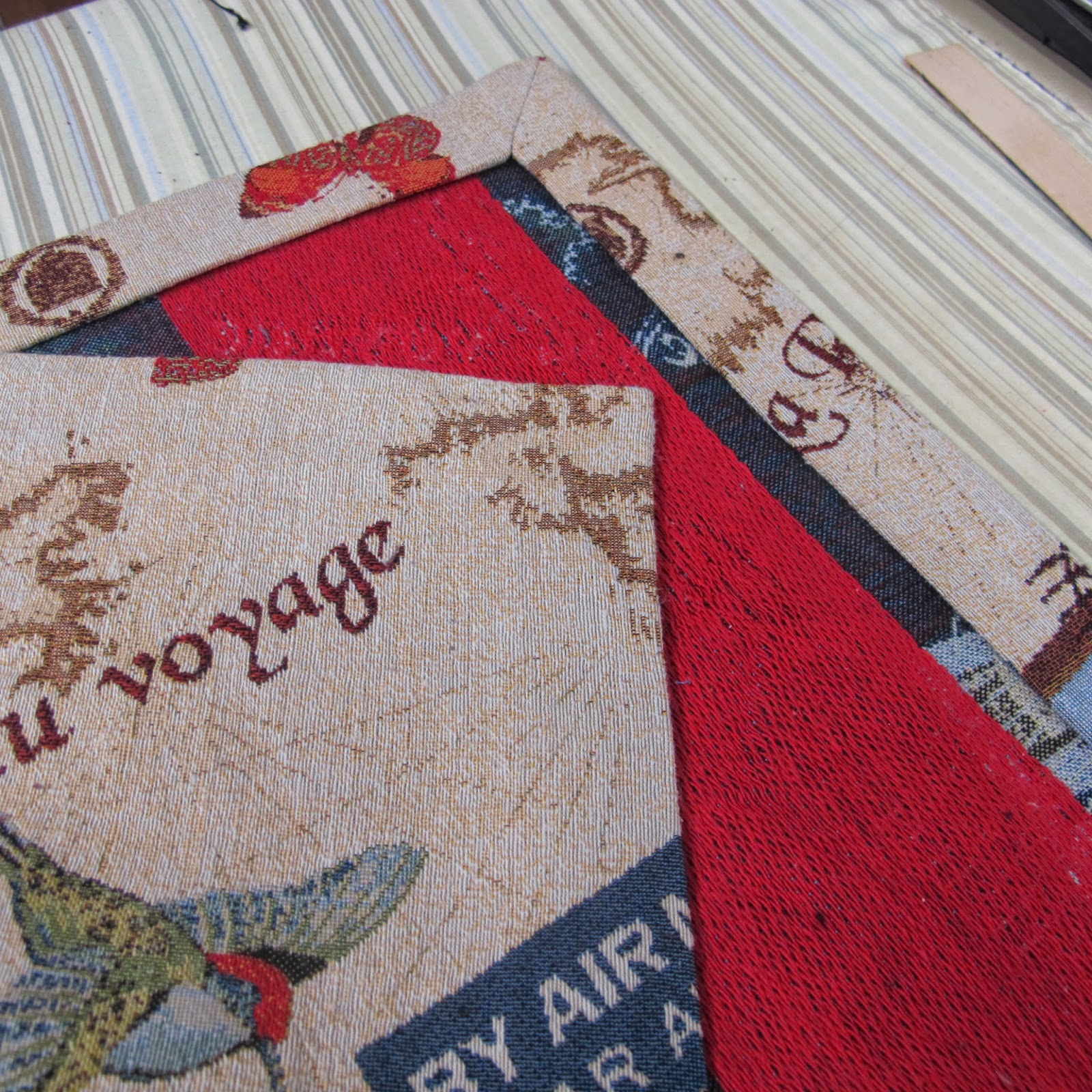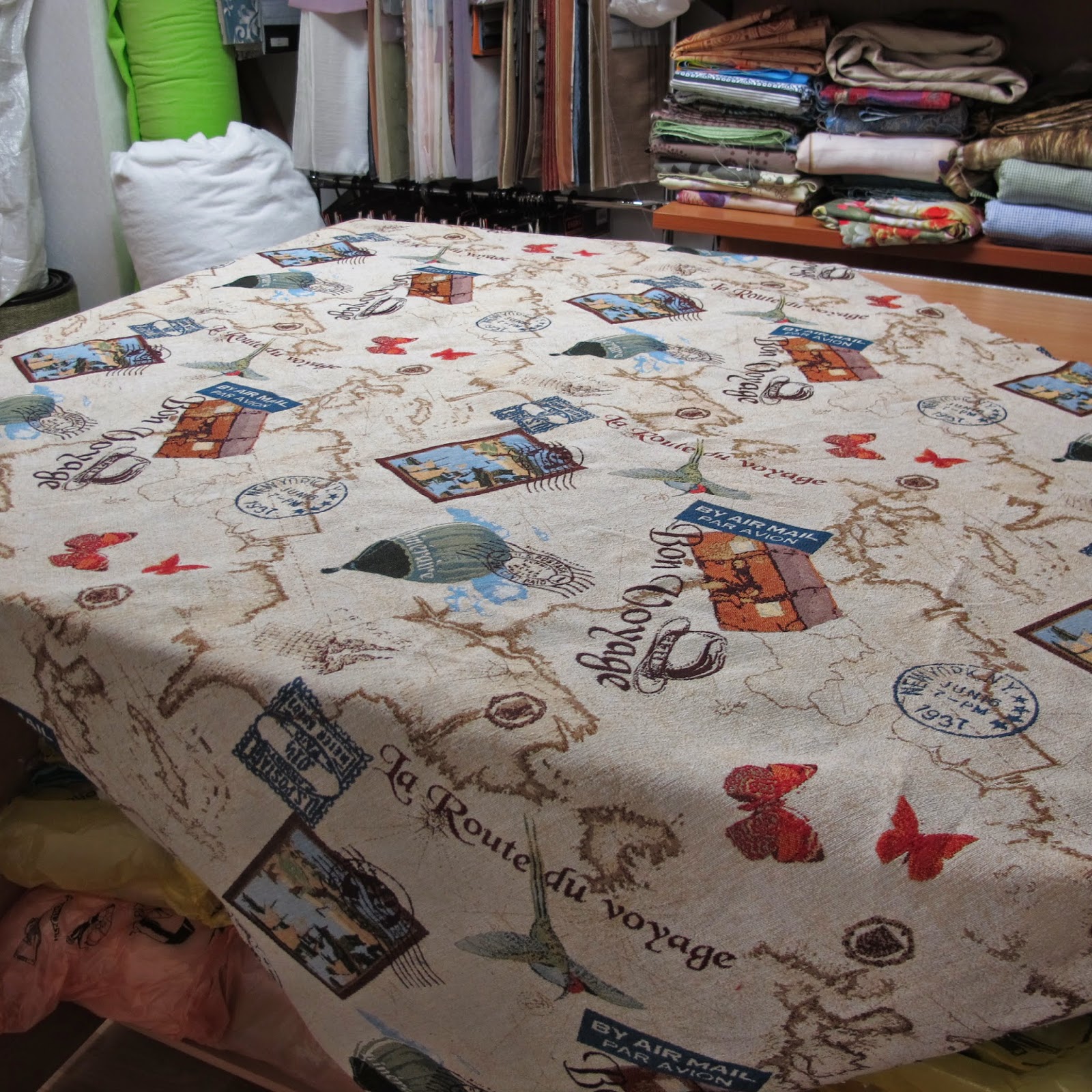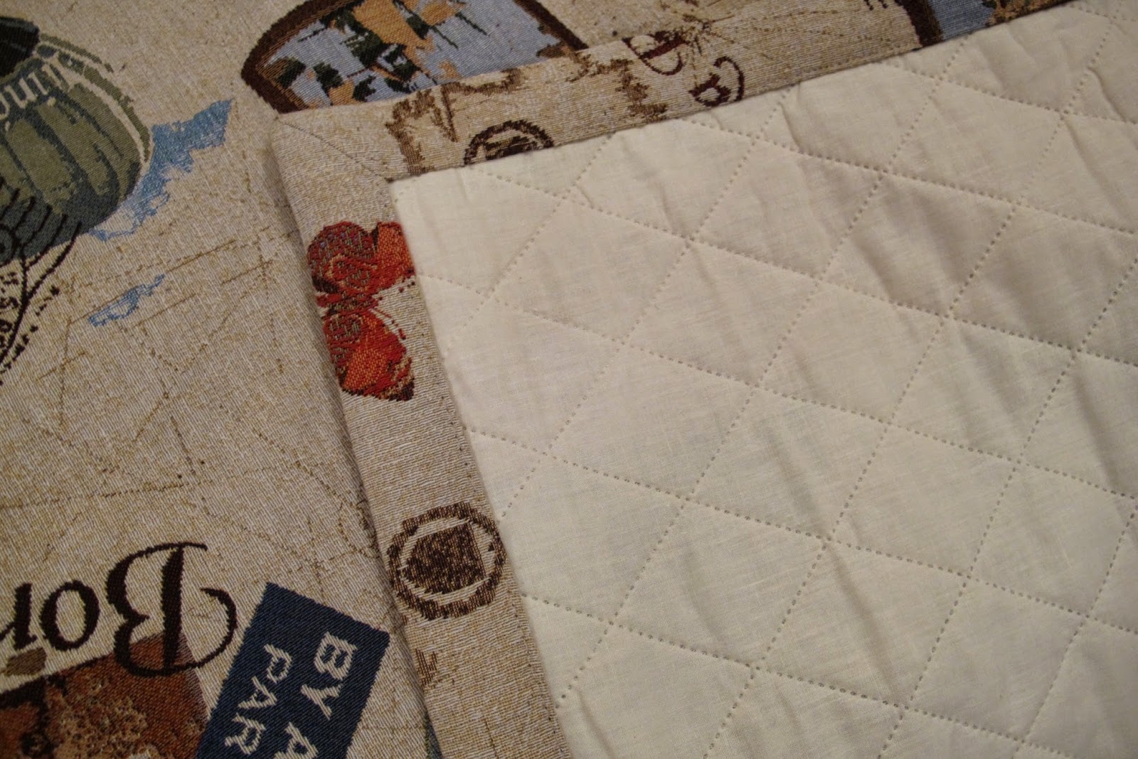 .  Для верха покрывала можно использовать гобелен, шенил, джинсовую ткань, либо любую портьерную ткань. В качестве подклада и утеплителя у меня используется термостежка из поликотона и синтепона.