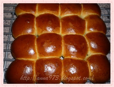 Подошедшее тесто разделить на 16 частей, вес каждой части 90 гр. и сформировать круглые булочки. Булочки разложить швом в низ на смазанный раст. маслом противень(я застелила противень бумагой для выпечки), на расстоянии не более 1см. друг от друга. Булочки накрыть и поставить на 60-80 минут, на расстойку.