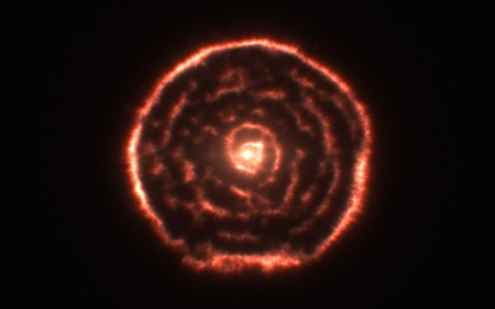 23. С через комплекса инструментов ALMA удалось зафиксировать спиральную структуру вокруг старой звезды R Sculptoris. Данное примета было зафиксировано впервые и, скорее всего, причиной его возникновения является маяк вселенной-партнер, которая вращается вокруг R Sculptoris.