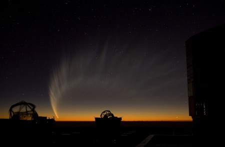 17. Получи фото изображен хвост известной кометы Макнот (McNaught) на фоне телескопа VLT.