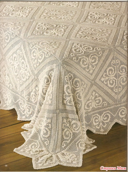 Размер покрывала 285см на 320 см, состоит из 42 квадратных мотивов ( 1 квадрат приблезительно 40 на 40см) и рюши, шириной приблизительно 23см.