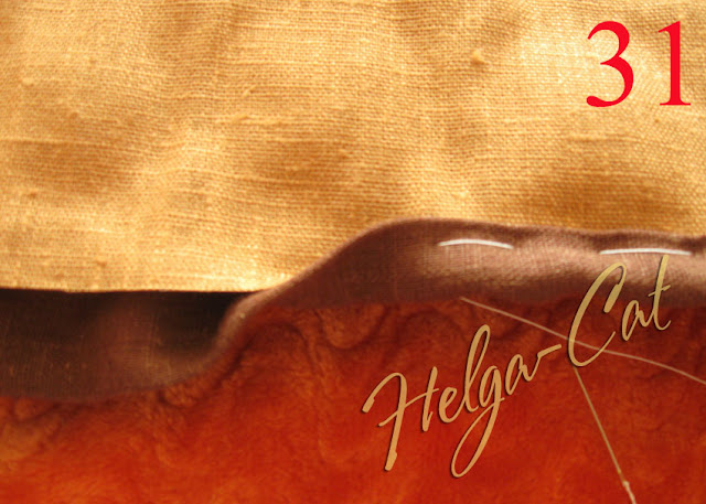 Например, на нижнюю юбку я взяла очень тонкий шоколадный стрейч-атлас – он мягкий, почти не мнется, одна сторона матовая, а другая гладкая и блестящая, приятно холодит – эту сторону я определила к телу в большинстве драпировок!