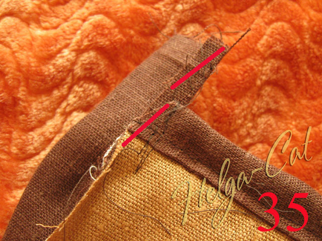 Далее процесс не описуемый, так я определяла глубину сумки.Долго черкала, вымеряла, затем прошила и срезала лишние уголки.