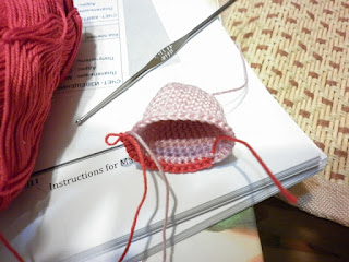 *3 СБН, прибавка* 6 раз, ), кончик нити, оставшийся при начале вязания, перекиньте на лицевую сторону, используйте ее как маркер, будет легче считать ряды и вывязывать столбики смещения (примерно каждый 3-й ряд).