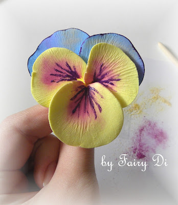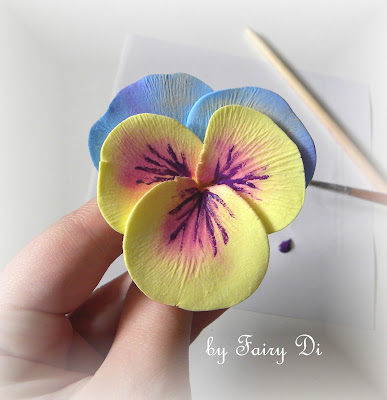 4- берем пастель желтого цвета и тонируем край голубых лепестков