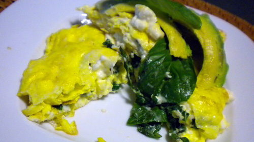 Отдельно взбиваем яйца, добавляем в них измельченный чеснок и по вкусу соль и молотый черный перец. Этой яичной массой заливаем овощи с ветчиной и лапшой в сковороде. Накрываем крышкой. Когда масса затвердеет – омлет готов.