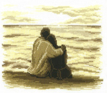 Двое у моря. Вышивка крестиком |