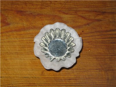 На бумагу ставим перевернутую формочку и чертим вокруг нее кружок.Теперь одно НО:если хотите получить высокие "юбочки",чертите круг большего диаметра,чем формочка;а если низкие,то просто обводите по контуру.
