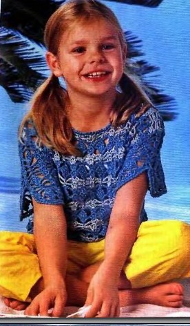 Встретилась яркая модель летнего детского пуловера (как-то пуловером одежку для такой погоды трудно назвать, но из песни слова не выкинешь).
