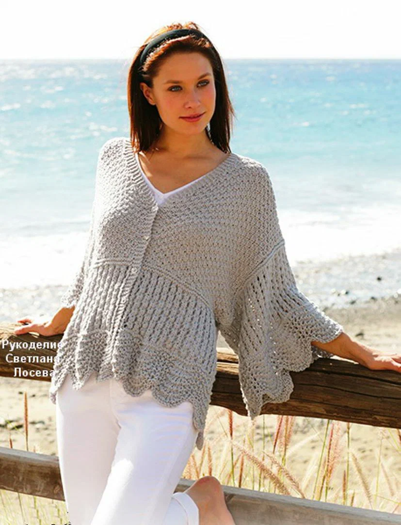 СТИЛЬНАЯ,МОДНАЯ ЛЕТНЯЯ КОФТОЧКА СПИЦАМИ НА ЛЮБОЙ РАЗМЕР. |