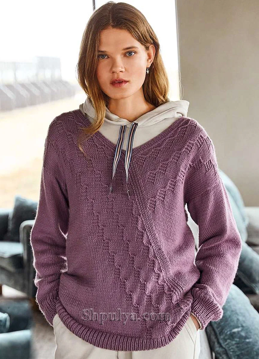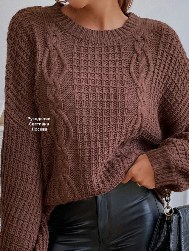 ПУЛОВЕР С УЗОРОМ ИЗ ПЕРЕКРЕЩЕННОЙ РЕЗИНКИ. ВЯЗАНИЕ СПИЦАМИ |