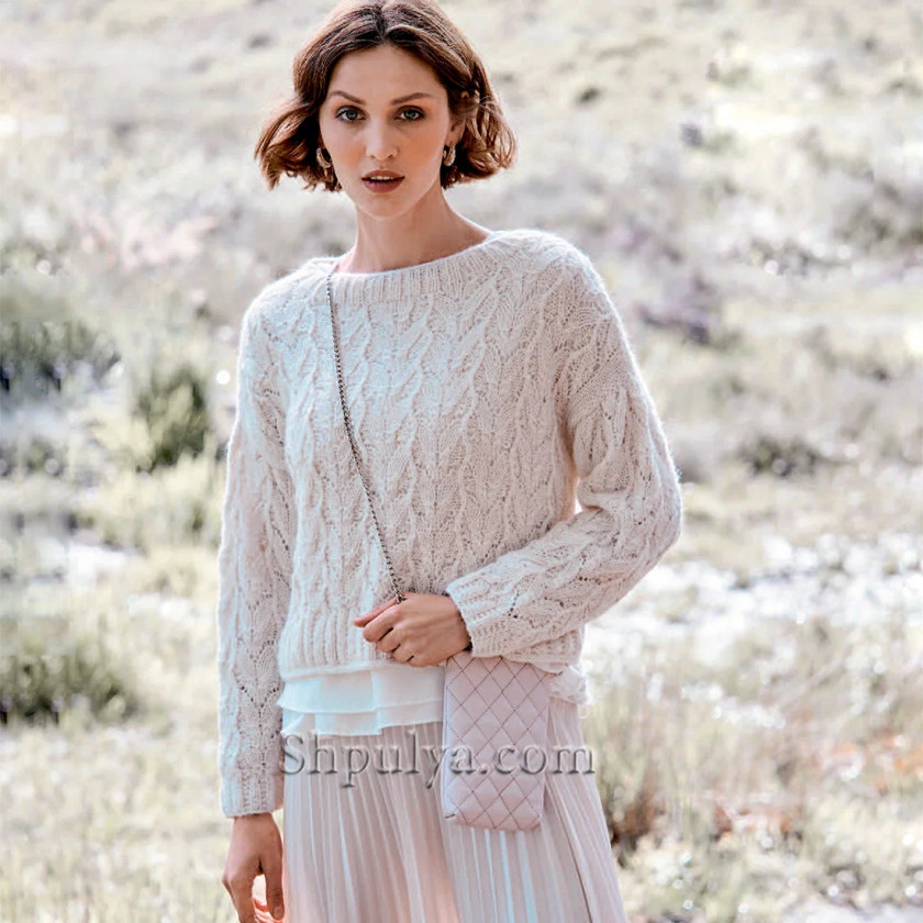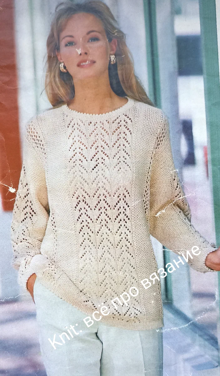 КРАСИВЫЙ ПУЛОВЕР ИЗ ХЛОПКА С АЖУРНЫМИ ПОЛОСАМИ: ОПИСАНИЕ И СХЕМЫ. |