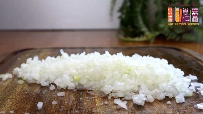 Очищаем лук и перец, нарезаем максимально мелкими кубиками.