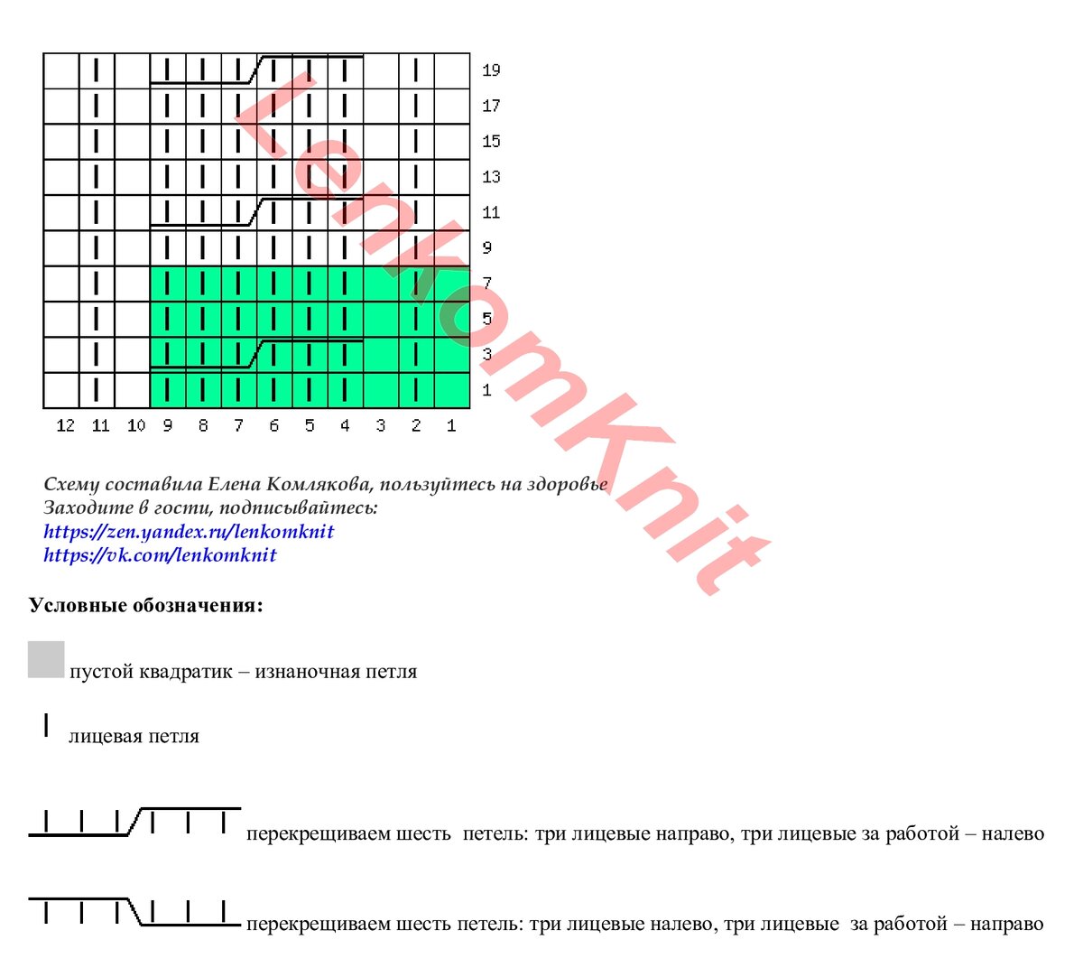 Раппорт ромба в ширину – с 8 по 29 петли. Справа и слева от этих петель узор составлен так, чтобы край полотна не отягощать “половинчатым” узором, так будет удобнее сшивать.