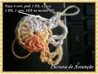 2 ряд: столбик без накида в каждую петлю (4 петли).