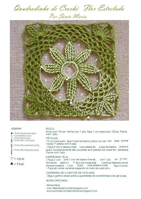 Gráfico, da FLOR DE CROCHÉ (Crochet Flower) que é o ínício do square, veja a seguir.