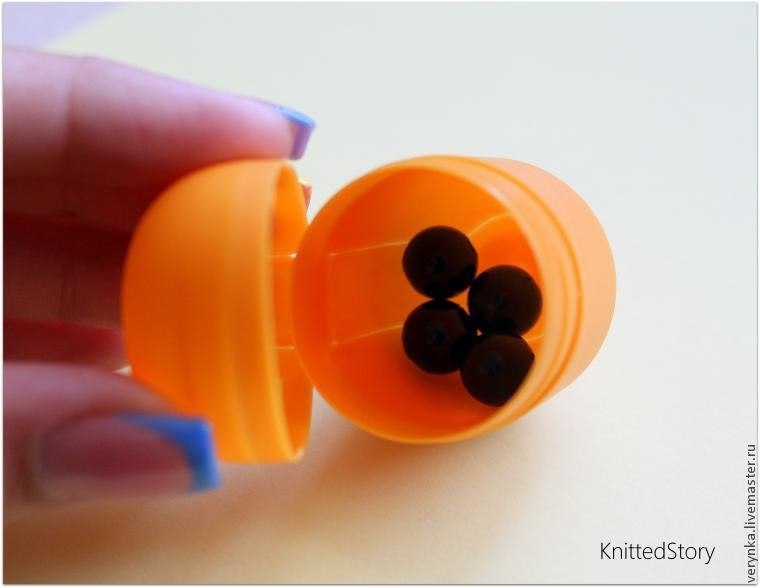 Бусинки вкладываем вовнутрь яйца и крепко закрываем его. Они будут выполнять функцию погремушки — будут шуметь внутри!