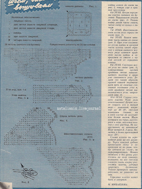7 ряд :[ 2 изн., 3 лиц., 2 вм. лицевыми с наклонов вправо, 2 изн.,1 лиц., 1 накид, 1 лиц, 1накид, 1 лиц.,] в конце ряда 2 изнаночные.