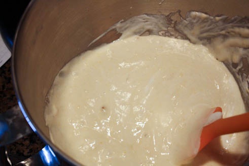 Взбейте все в однородную пышную массу. Если торт готовите для взрослых, то в крем можно добавить ликер или коньяк (1—2 столовые ложки).