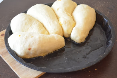 Каждую часть раскатать в овальную лепешку и выложить на нее ножку. Защипнуть как пирожок. Все швы слепить как следует.