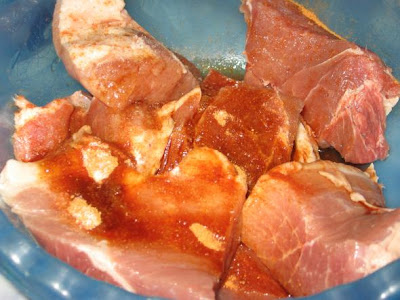 Добавили соевый соус, немного, но чтоб хватило на всё мясо.