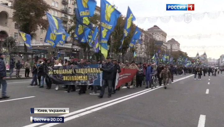 Марши националистов и портреты Бандеры по всему Киеву. Так на Украине теперь выглядит День защитника. Праздник, который перенесли с 23 февраля на 14 октября — дату создания Украинской повстанческой армии (запрещена в РФ). Той самой, что воевала на стороне Гитлера и массово вырезала жителей Украины.