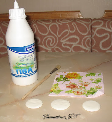 Для этого нам понадобятся: клей ПВА, кисточка и салфетка для декорирования.